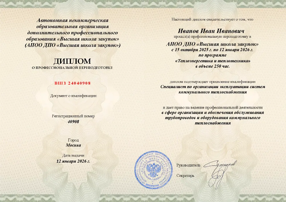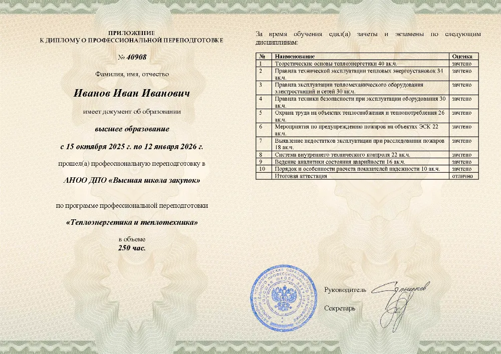 Программа профессиональной переподготовки (250 часов) для специалистов по теплоэнергетике в в Великом Новгороде. Освойте теоретические основы, техническую эксплуатацию и безопасность тепловых энергоустановок, правила охраны труда, пожарной безопасности и аналитику надежности объектов.