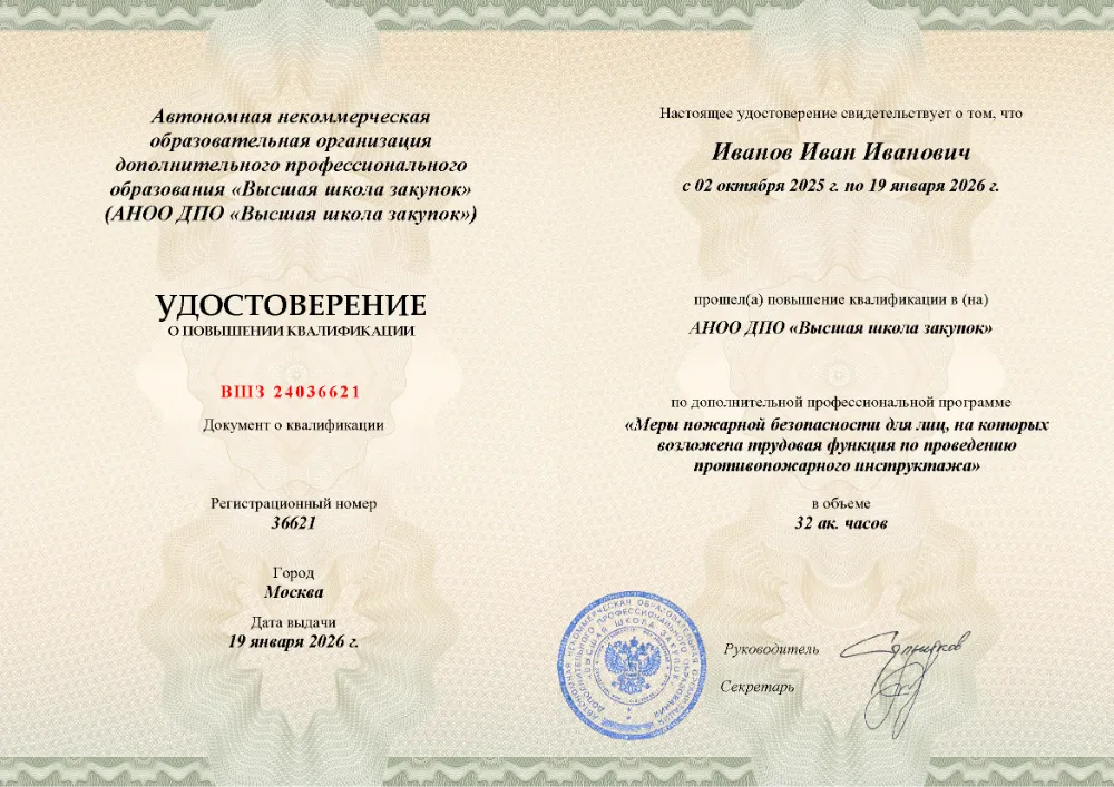 Повышение квалификации, 32 академических часа, 3 модуля: нормативно-правовые основы и обязанности инструктора, содержание и методика проведения противопожарных инструктажей, практические знания и навыки для эффективного обучения персонала. Онлайн-обучение в в Великом Новгороде с итоговой аттестацией.