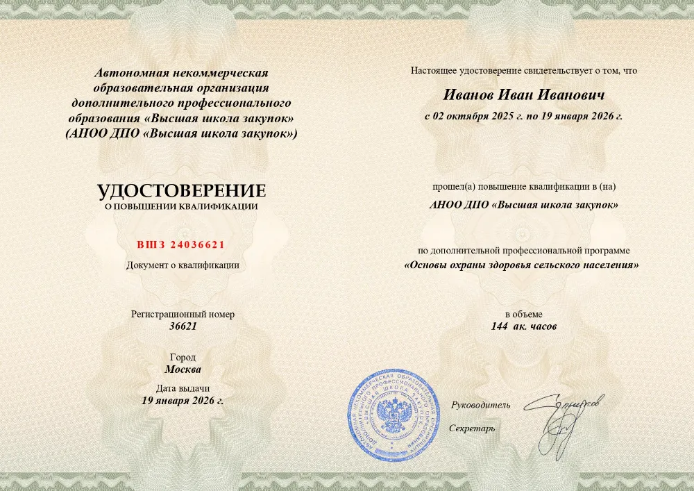 Курс повышения квалификации (144 часа) по основам охраны здоровья в сельской местности. Изучите правовые, организационные и экономические аспекты сельского здравоохранения, санитарно-эпидемиологическое обеспечение и управление качеством медицинской помощи. Онлайн-обучение в в Великом Новгороде с итоговой аттестацией.
