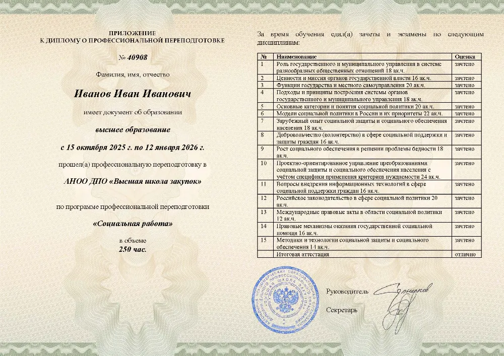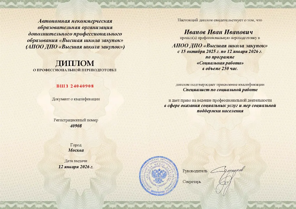 Программа профессиональной переподготовки (250 часов) для специалистов по социальной работе в в Великом Новгороде. Освойте государственное и муниципальное управление в социальной сфере, модели социальной политики, правовые механизмы помощи, волонтерство и внедрение информационных технологий.